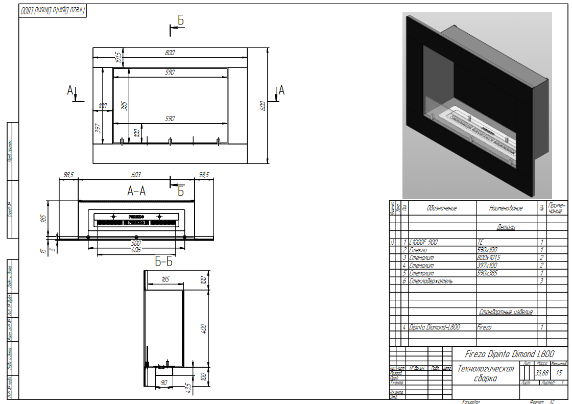 - Базовые размеры камина: 800x200x600 мм