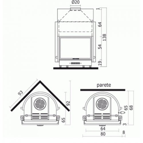 Каминная топка с водяным контуром из толстой стали, способная производить горячую воду, поступающую в контур системы отопления и на радиаторы, а также производить горячую техническую воду. Дверца с подъемом, плоское стекло. Топка может устанавливаться как в пристенном, так и в угловом варианте исполнения камина.