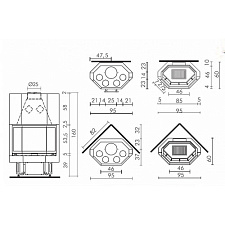 Модель относится к пристенным каминам деревенского дизайна, с характерными элементами этого стиля: Д-образной формой корпуса, каминной балке из массива дерева и высоким дымоходным колпаком.