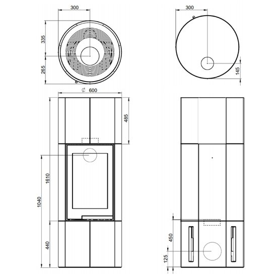 Корпус камина - цилиндрической формы. Тип расположения в помещении - островной или пристенный.